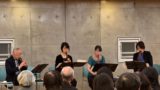 1時間目は中学生によるアンサンブルの公開レッスンを指導しました。合図の出し方、いい音の探し方、タイミングの合わせ方、チューニングなど、まずは技術に焦点を当てました。