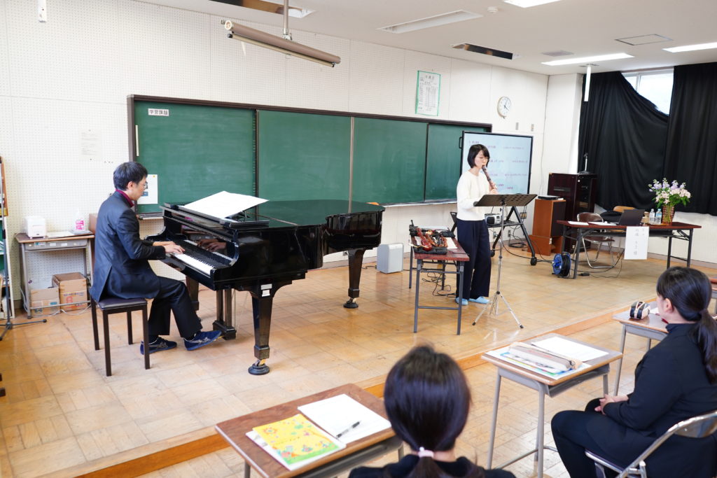 この度は、きめ細やかな準備をしてくださった研修会事務局の先生方、会場をご提供くださり温かく迎えてくださった沼津市立大平中学校の校長先生(講師席に素敵なお花を飾ってくださり、演奏後には豪華な花束まで…)、ご多用の中ご参加くださった先生方、そして教育芸術社のご担当者様に、心より御礼申し上げます。 そして、運転と撮影で陰ながら支えてくれた夫にも深く感謝しています。