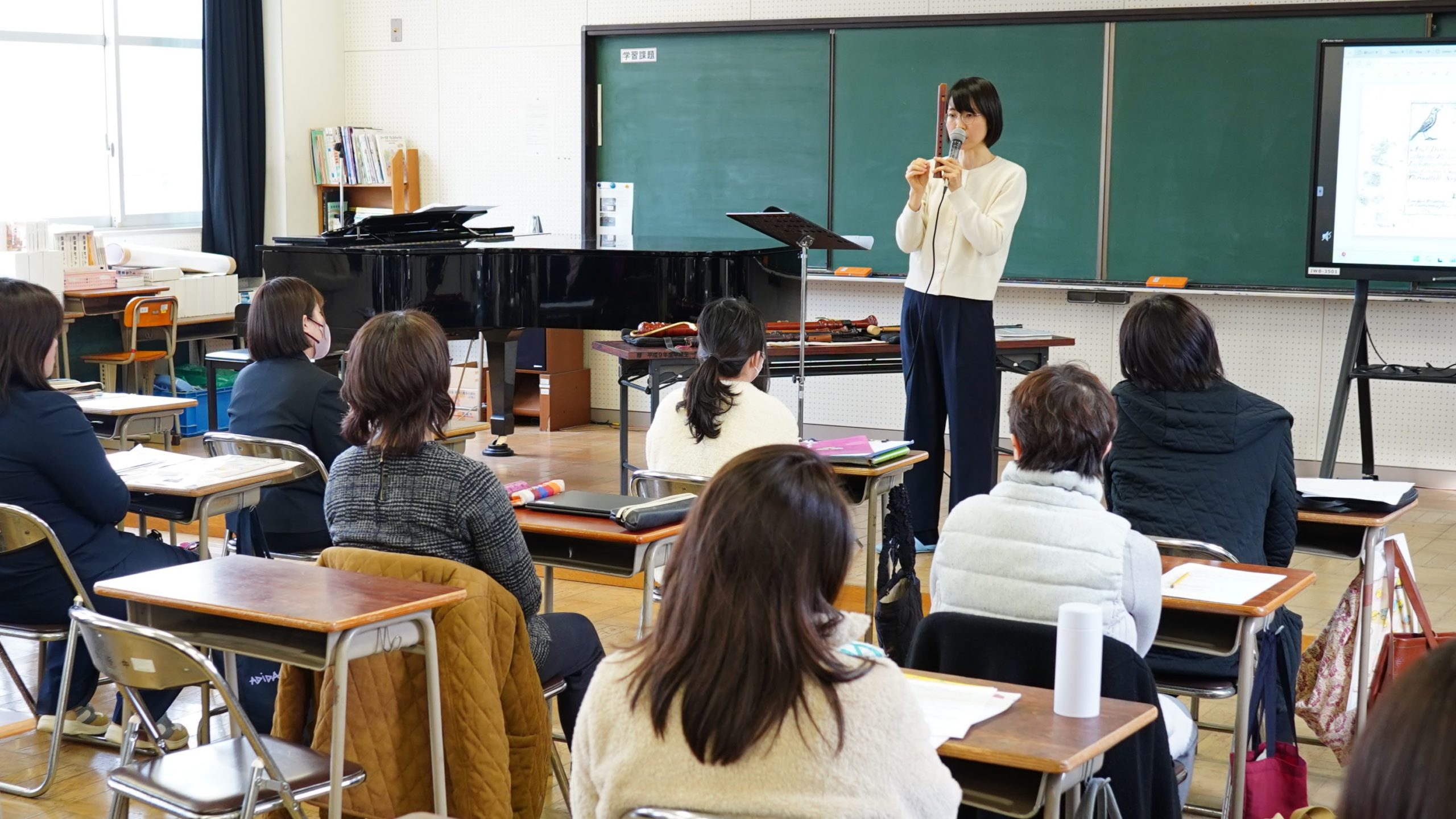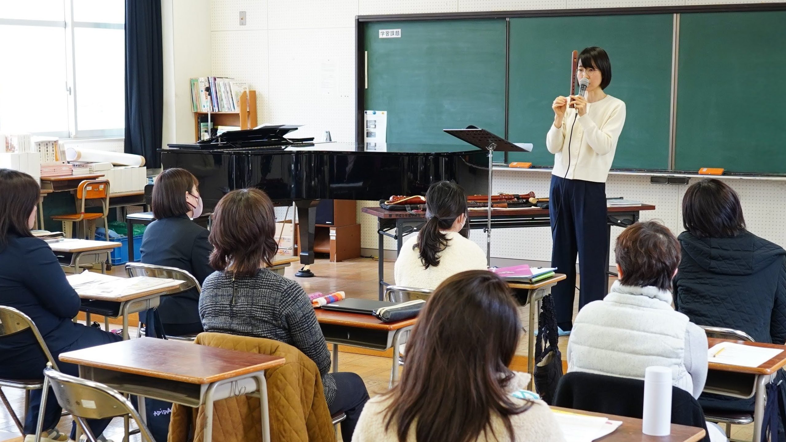 沼津市音楽教育研究部会より「教科書に載っている演奏者に直接教わりたい」とのご依頼を教育芸術社経由でいただき、2月20日に研修会の講師を務めさせていただきました。沼津市内の小中学校の音楽の先生方を対象に「リコーダー演奏技術・授業力向上研修会 〜プロ演奏家から学ぶリコーダーの魅力・楽しいリコーダーの授業〜」と題し、プロとして私が培ってきたノウハウをお伝えしました。