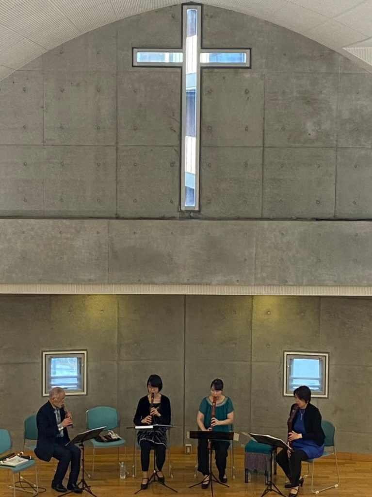 会場となった大森福興教会の礼拝堂は、尖頭アーチ型の天井が素晴らしい響きを生み、心地よく演奏させていただきました。素敵な会場をお貸しいただきありがとうございました。そして、お越しくださった皆さま、本当にありがとうございました。これからもリコーダーの道を切り拓きながら、前へ進んでいきたいと思います。